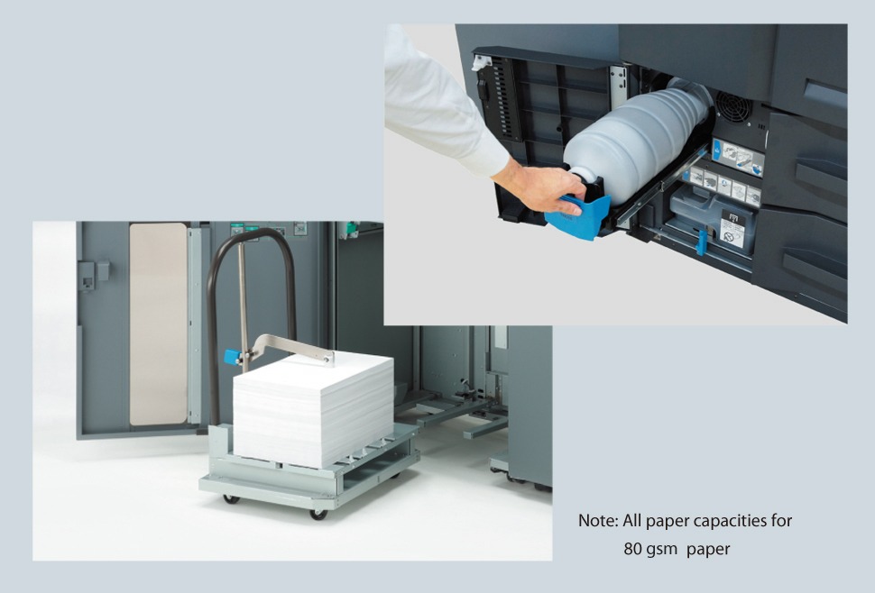 حد اکثر ظرفیت کاغذ 14000 ورق با واحد تغذیه کاغذ با ظرفیت بزرگ